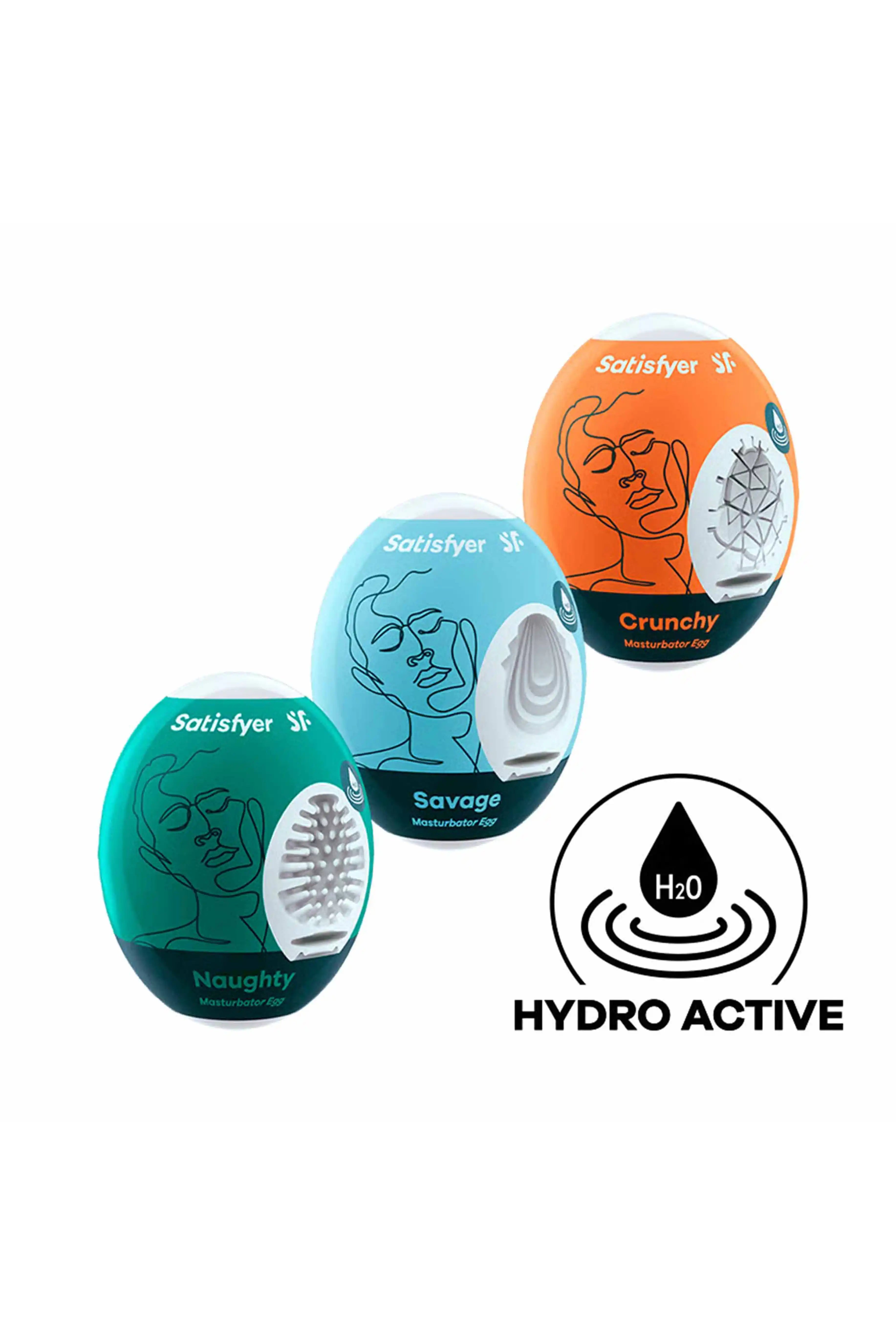 Das 3er-Set Masturbator Eggs bietet drei einzigartige Empfindungen: Naughty (intensive Rippen), Savage (stimulierende Wellen) und Crunchy (körnige Textur). Hergestellt aus hydroaktivem TPE , können sie mit etwas Wasser oder Speichel ohne zusätzliches Gleitmittel verwendet werden. Kompakt und diskret sind sie ideal für Solo-Vergnügen, Reisen oder Entdeckungen.