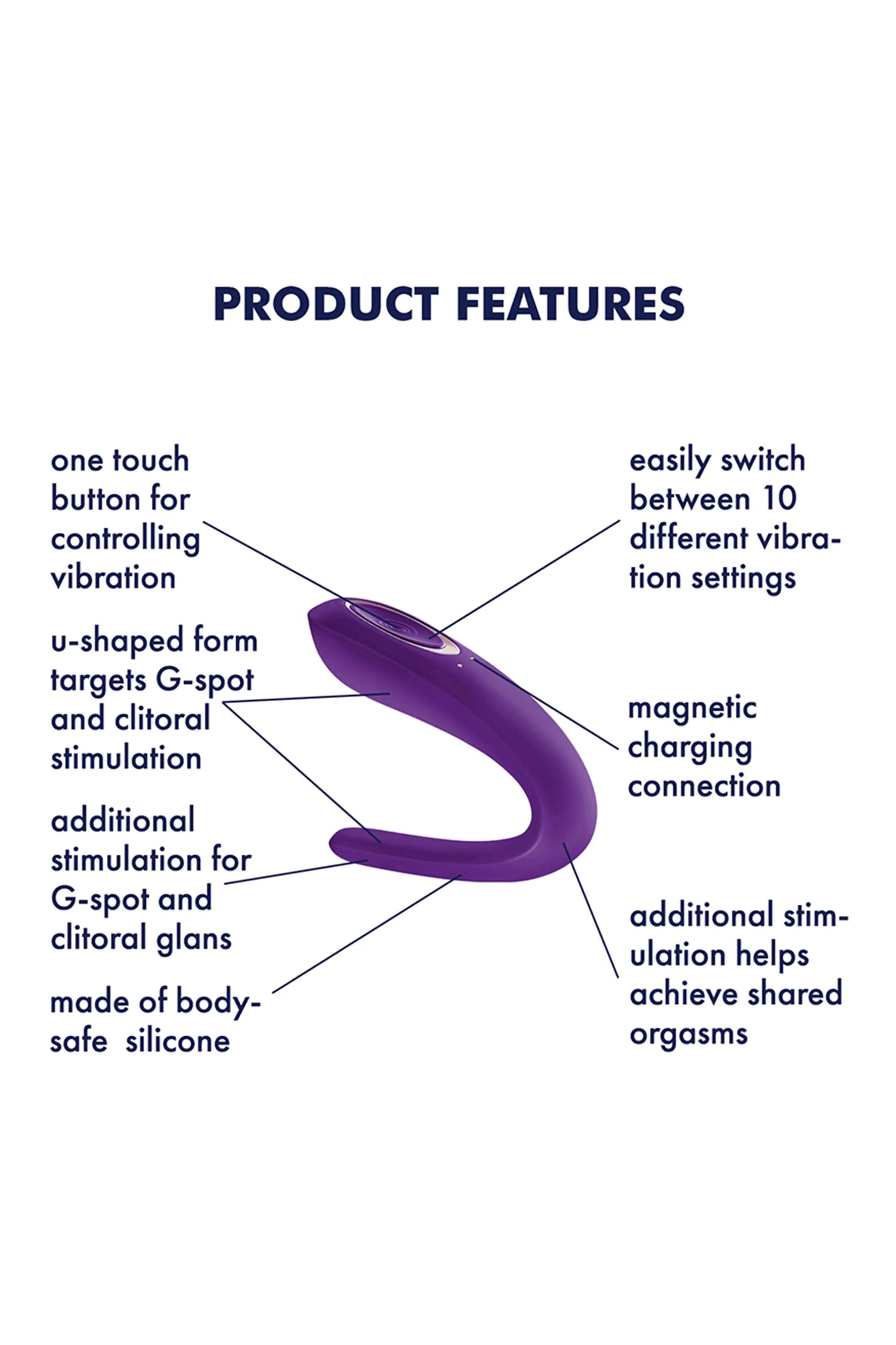 Der Satisfyer Double Classic ist der perfekte Begleiter für eure ersten gemeinsamen Erfahrungen. Sein innerer Arm stimuliert G-Punkt und Penis, während seine äußere Oberfläche intensive Vibrationen an die Klitoris liefert. Mit 10 Vibrationsprogrammen und einem leistungsstarken Motor intensiviert er jedes Erlebnis. Wasserdicht, leise und aus medizinischem Silikon gefertigt, eignet er sich auch für den Solo-Gebrauch.
