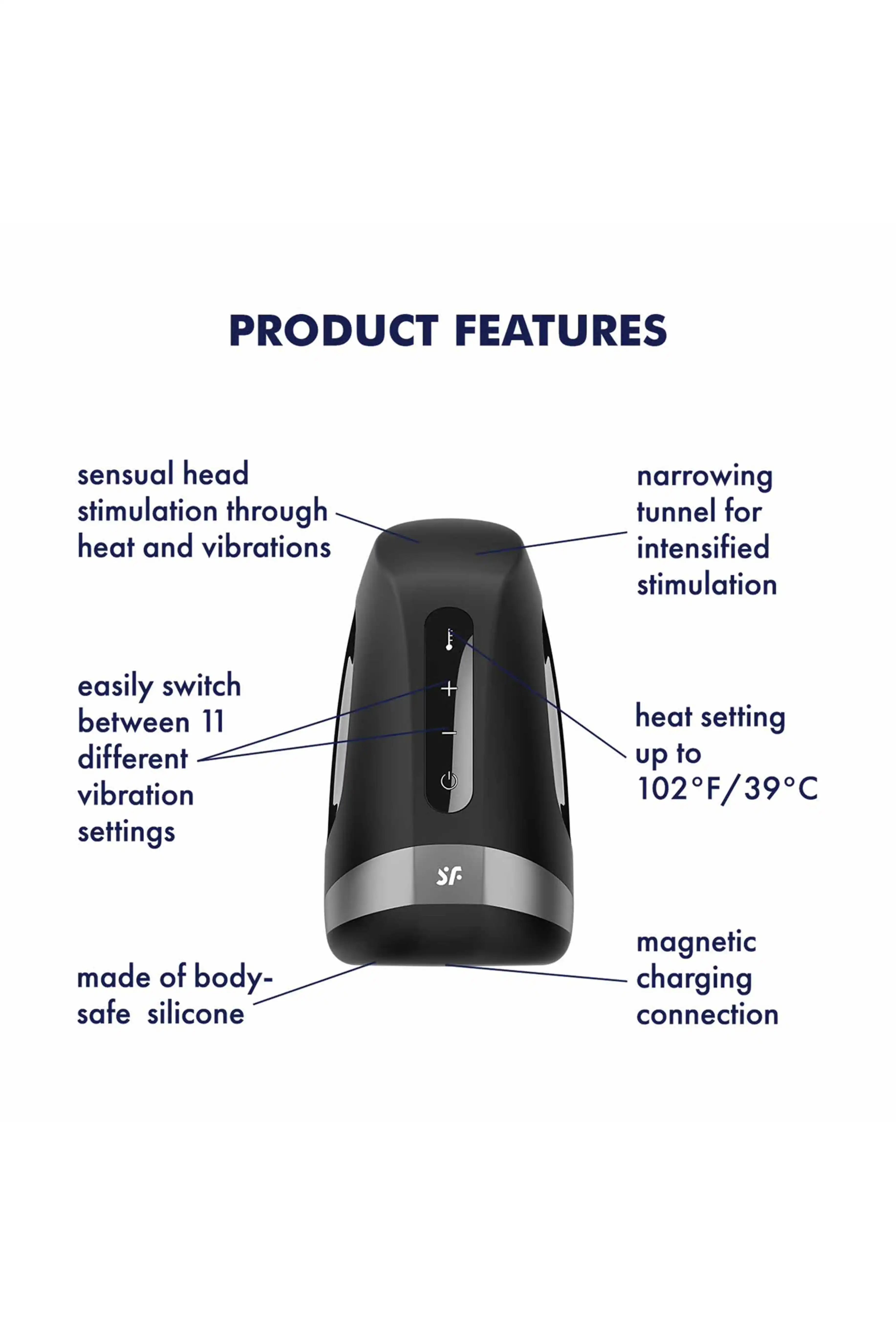 The Satisfyer Men Heat Vibration combines powerful vibrations with a heating function up to 40°C for realistic and exciting sensations. Designed for stimulation of the glans and penis, it offers 11 varied vibration programs . Its ergonomic design and ease of use make it an ideal companion for endurance training or solo pleasure.